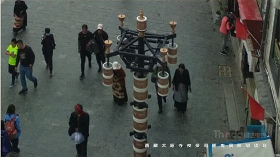 大昭寺四周的路燈設(shè)計(jì)融入轉(zhuǎn)經(jīng)筒和酥油燈的元素,造型富有美感又與大昭寺佛教形象和諧統(tǒng)一。燈具采用更加高效、節(jié)能、精致的ERCO投光燈,作為基礎(chǔ)照明灑亮路面。