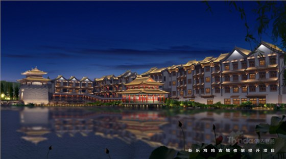 亮化設(shè)計(jì)從宏觀和微觀兩種尺度入手:在宏觀上強(qiáng)調(diào)整體性,建立清晰的夜景結(jié)構(gòu)并區(qū)分主次,體現(xiàn)青磚黛瓦,淡雅風(fēng)華,那種褪盡喧囂之后的寧?kù)o和內(nèi)斂。在微觀上,以人為本實(shí)現(xiàn)照明的舒適性,營(yíng)造溫馨雅致的光環(huán)境。本案中雞鳴古城亮化設(shè)計(jì)將主入口處城樓及親水樓臺(tái)為高亮度區(qū)域,沿街立面烘托商旅氛圍為中亮度,建筑頂部營(yíng)造靈境、淡雅的光環(huán)境,弱化表現(xiàn)為低亮度區(qū)域。主體光色以暖光呈現(xiàn),靜態(tài)光為主。燈光主要體現(xiàn)其渾厚、大氣的建筑結(jié)構(gòu),打造整體感與形態(tài)美,滿足建筑自身功能和精神需求的同時(shí),突出顯著入口標(biāo)志。以間隔小投光形式呈現(xiàn),突出入口醒目標(biāo)志和節(jié)點(diǎn)設(shè)計(jì)。拒絕大面積重彩潑墨,以投光進(jìn)行小范圍營(yíng)造,點(diǎn)綴成景,留白處理,避免喧鬧、浮華,營(yíng)造靜謐、文雅的氛圍。燈光錯(cuò)落有致,層次分明,有熱鬧活力的商旅氛圍,也有溫馨雅致的古典情懷,使人漫步其中,移步異景,感受她的舒適與雅致。