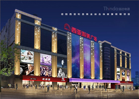 西亞和美商業(yè)廣場地處于河南省信陽市,位于東方紅大道、南臨北京南路、東臨統(tǒng)一街,周邊有鳳凰新世界、東方京城、軸線之廊,位置優(yōu)越,交通便利。這里信陽人民平時生活娛樂與購物餐飲的地方,也是IGA中國區(qū)優(yōu)秀零售商。目前商業(yè)廣場夜景照明已經(jīng)跟不上整體的商業(yè)需求,急需進(jìn)行照明設(shè)計(jì)施工改造升級,為此信陽西亞和美業(yè)主聯(lián)系到信達(dá)科技,雙方根據(jù)本案開展照明設(shè)計(jì)施工合作。