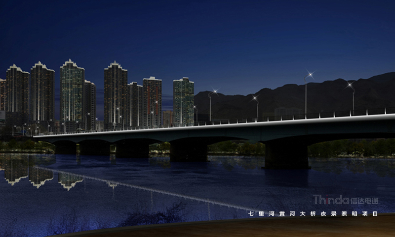 七里河黃河大橋建于1977年,是當(dāng)時國內(nèi)新建的黃河上最大跨度的鋼筋混凝土懸臂梁橋。信達對其夜景提升提供全過程服務(wù)。在照明設(shè)計中,強調(diào)扶手、欄板、橋墩結(jié)構(gòu),功能性與裝飾性照明兼具,能夠突出橋體的端莊與大氣。在工程施工期間,信達電通全程把控效果展現(xiàn),并提供后期技術(shù)咨詢維護服務(wù)。