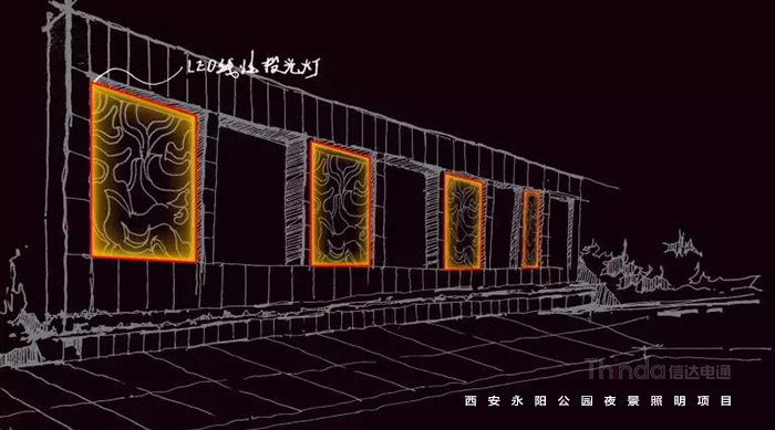 永陽(yáng)公園是西安一個(gè)別開(kāi)生面的科技公園,因地處唐代長(zhǎng)安永陽(yáng)坊而得名,位于西安市丈八東路和西灃公路十字路口,是由西安高新技術(shù)產(chǎn)業(yè)開(kāi)發(fā)區(qū)興建,占地10萬(wàn)平方米,2006年對(duì)外開(kāi)放。繼2016年完成西安高新區(qū)夜景亮化設(shè)計(jì)之后,信達(dá)電通對(duì)永陽(yáng)公園進(jìn)行夜景照明規(guī)劃設(shè)計(jì)。